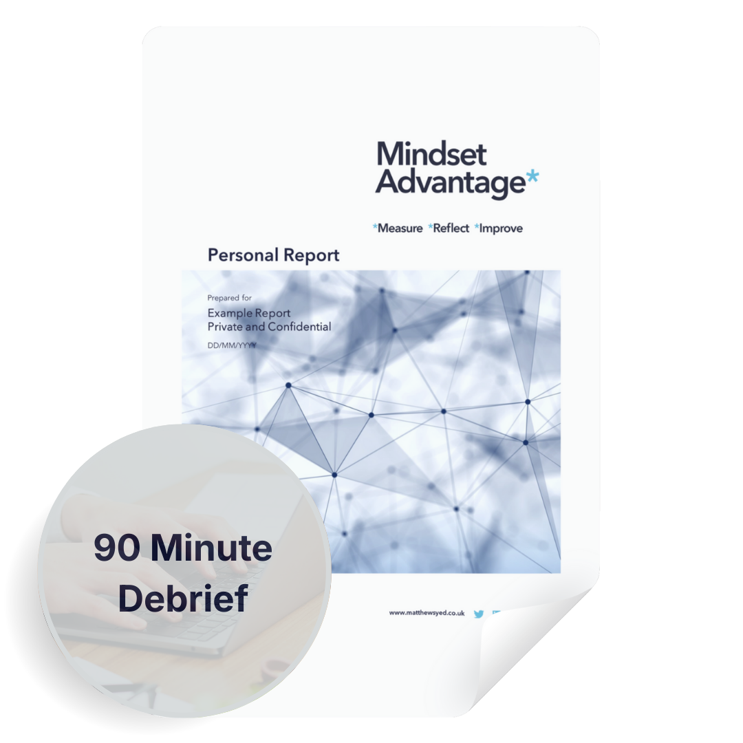 Once you purchase your report, you will receive a link to complete the 15-20 minute assessment. Once completed, you will receive your Mindset Advantage Personal Report directly, as well as information on how to schedule your 90-minute debrief session with an expert from the Matthew Syed Consulting team.
