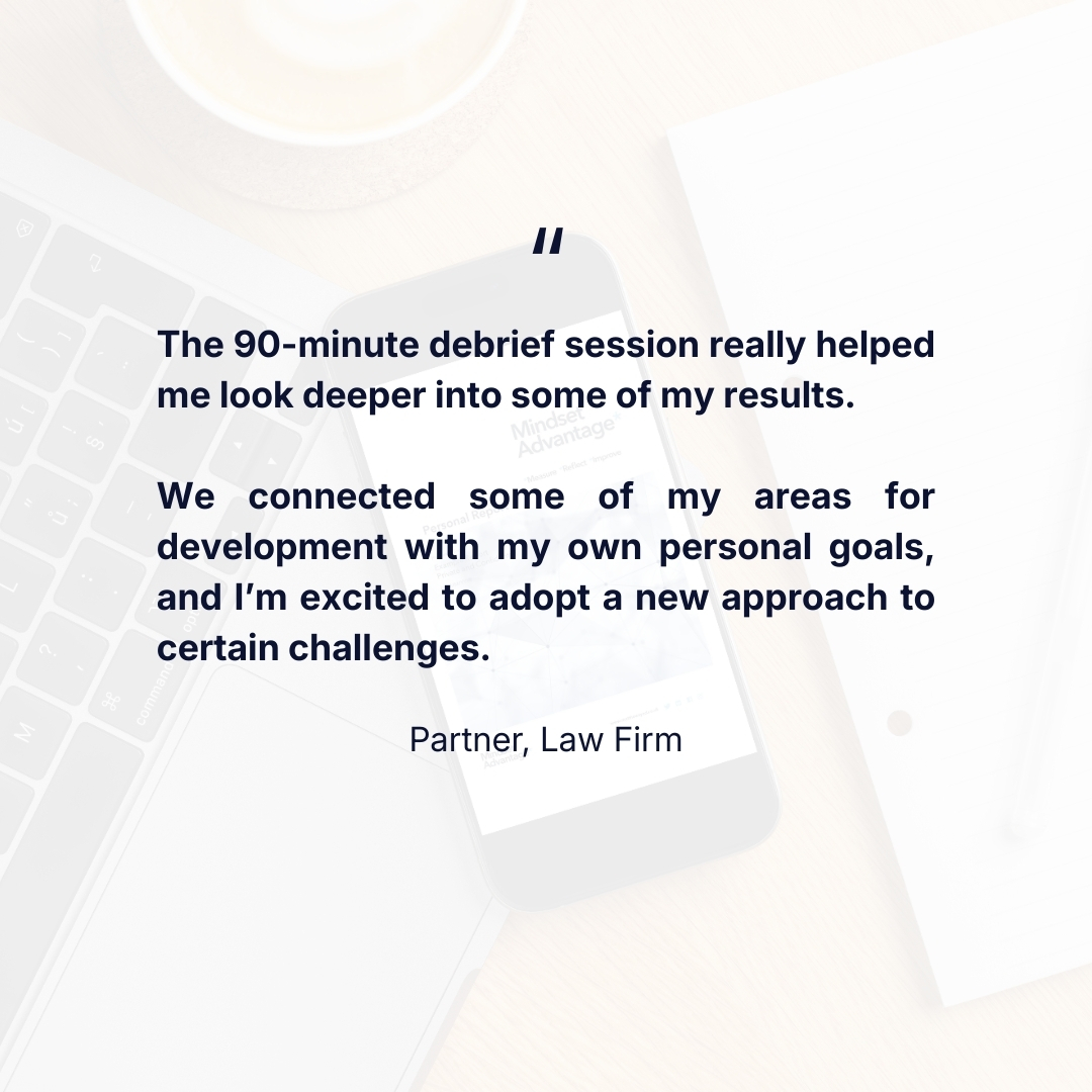 The Mindset Advantage Personal Report and Debrief is designed specifically for individuals seeking a deeper understanding of their psychometric results, along with an opportunity to discuss their results and goals with an expert, and a set of practical activities to take forward.